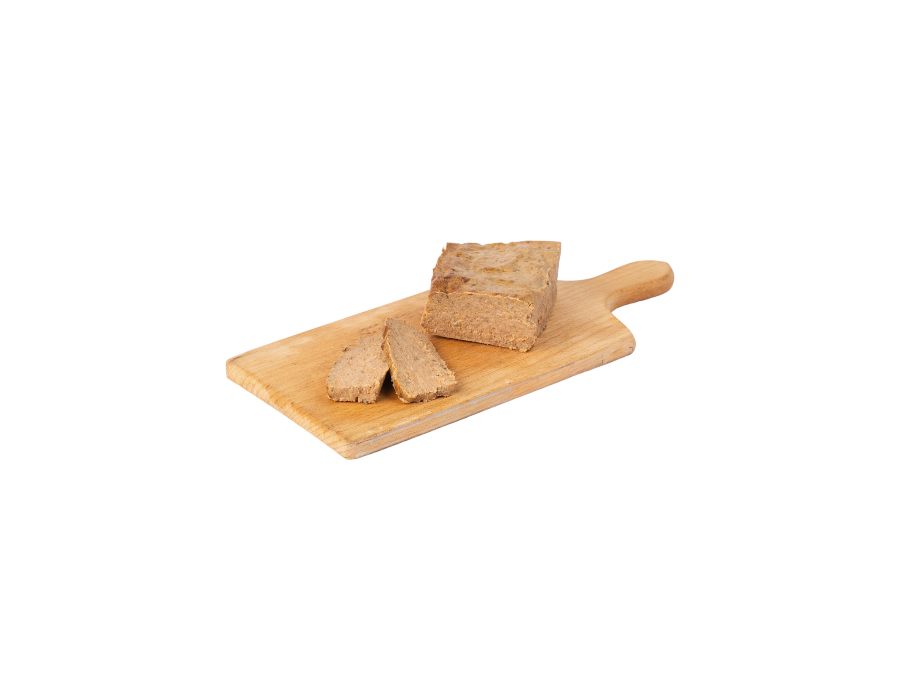 Ovnbakt grov leverpostei laget av svinelever, svinekjake og buklist.